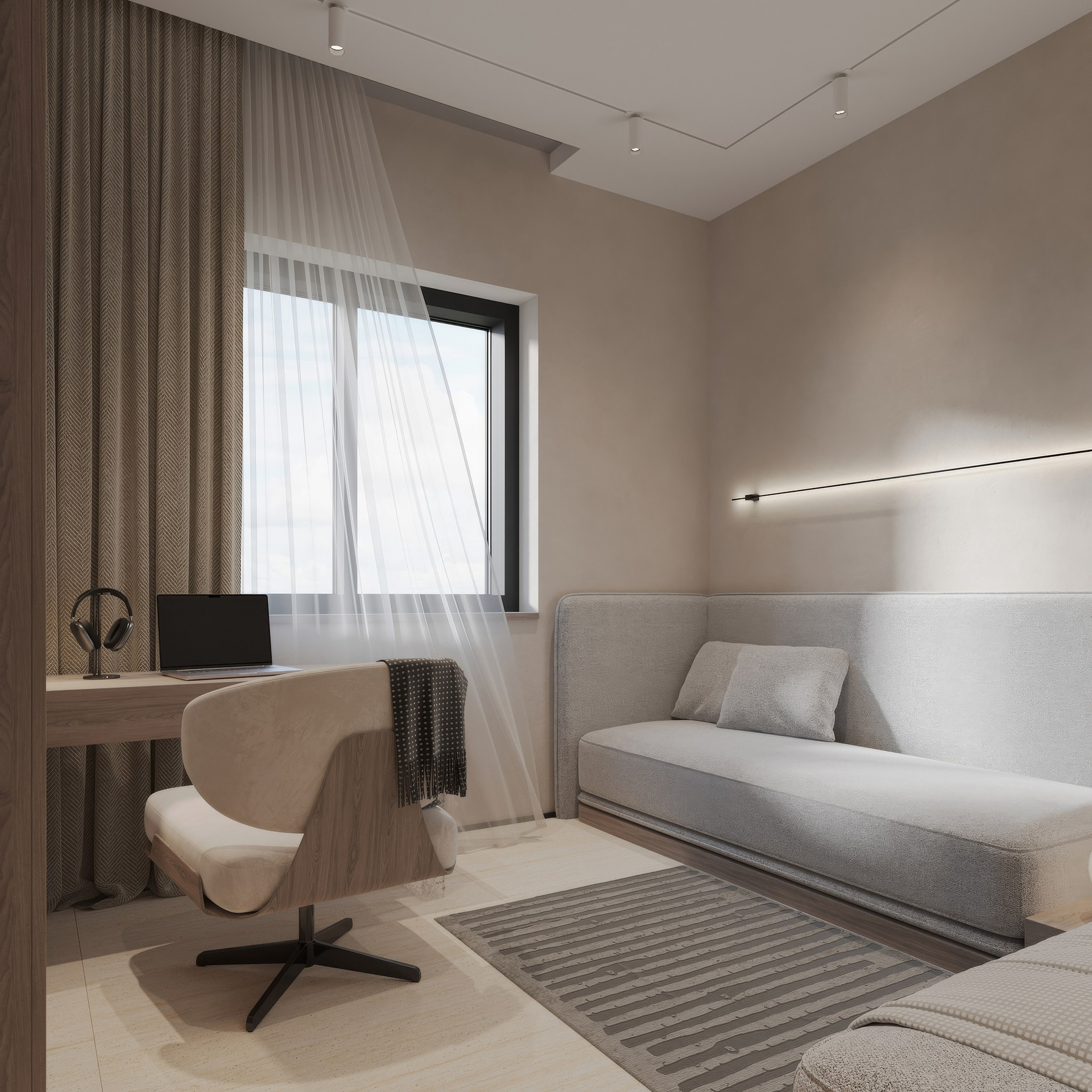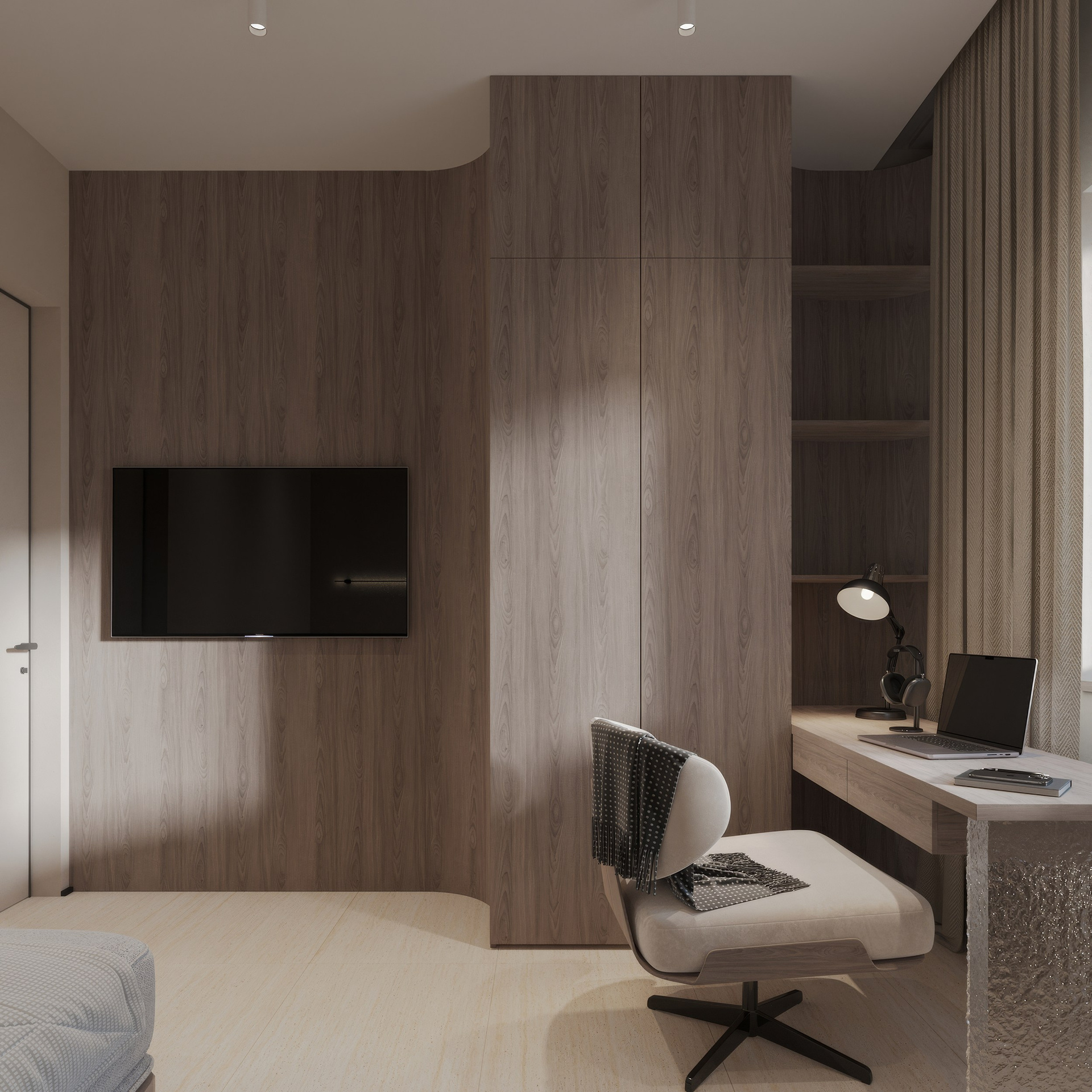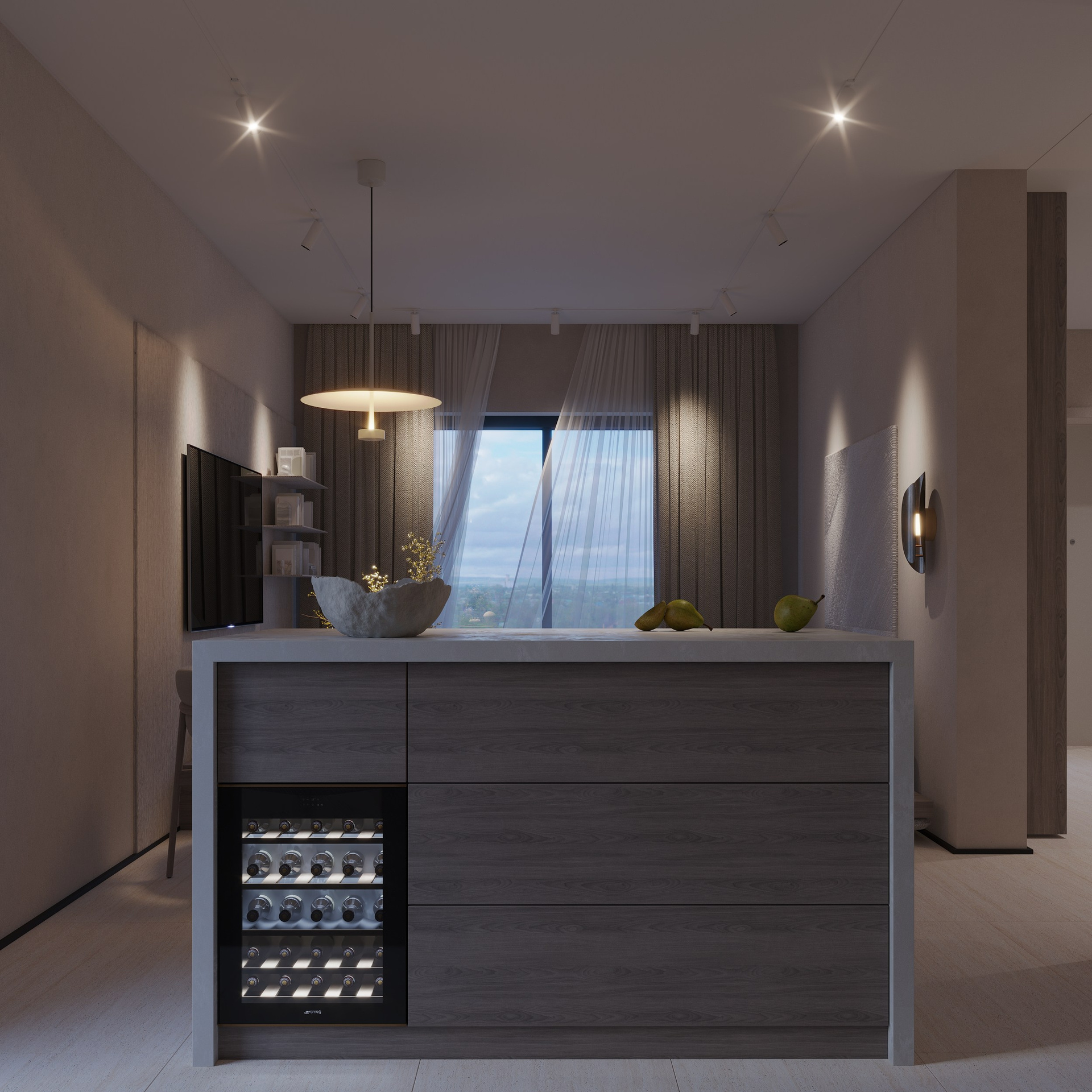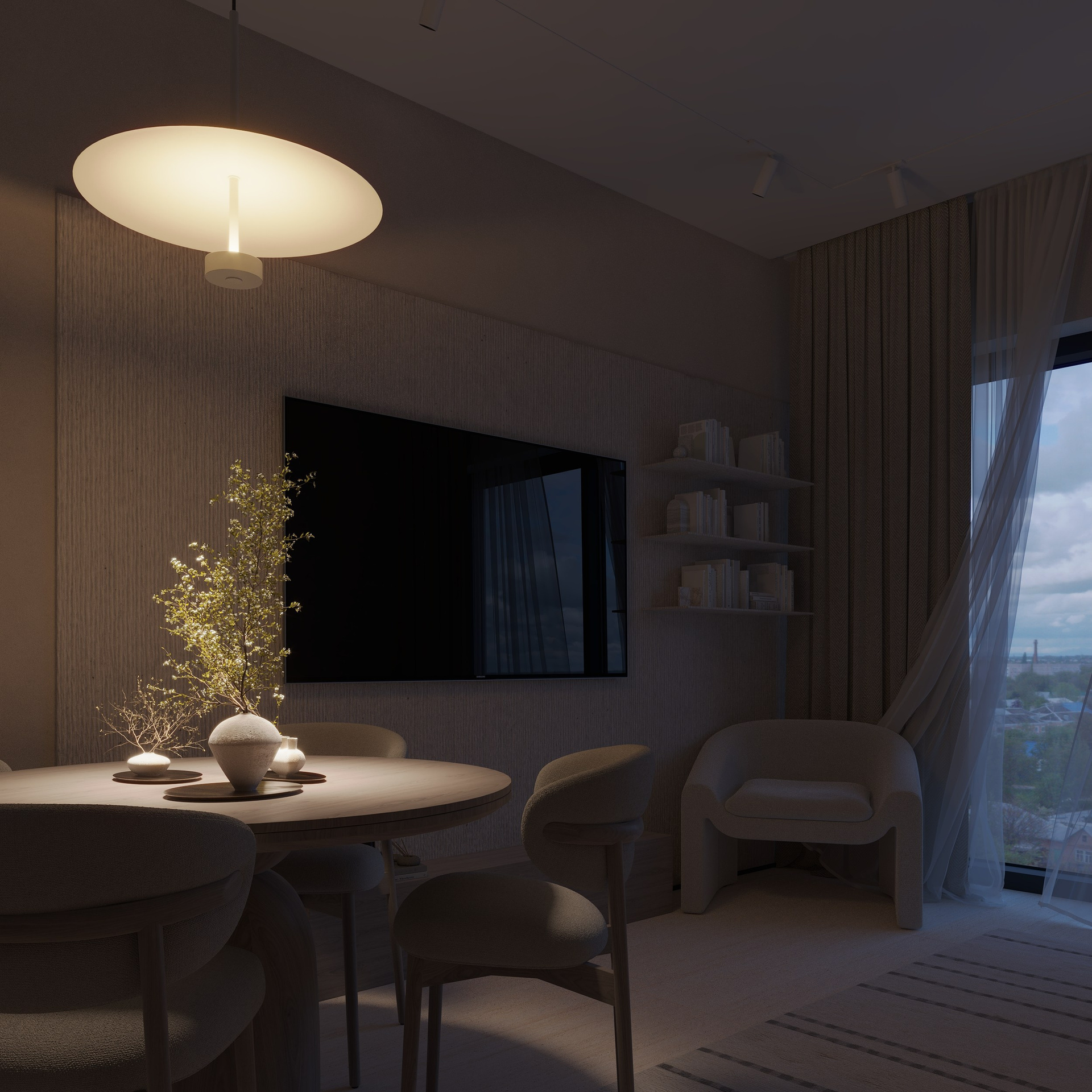 Задачей студии Baxx Pro было передать естественную теплоту интерьера через свет, фактуры и настроение. Визуализация выполнена с высокой степенью фотореализма — тщательно проработаны отражения, микродетали материалов и глубина пространства.